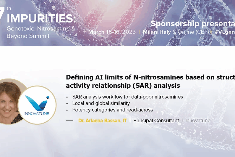 Innovatune will contribute to #VLGenotoxic 2023 with Dr. Arianna Bassan presentation focussing on N-nitrosamines, one of the main themes of the event…